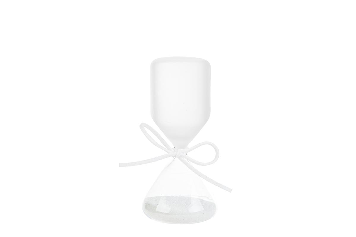 Bomboniera Clessidra Vetro Bianca Satinata con Astuccio per nascita o battesimo, comunione, cresima e laurea