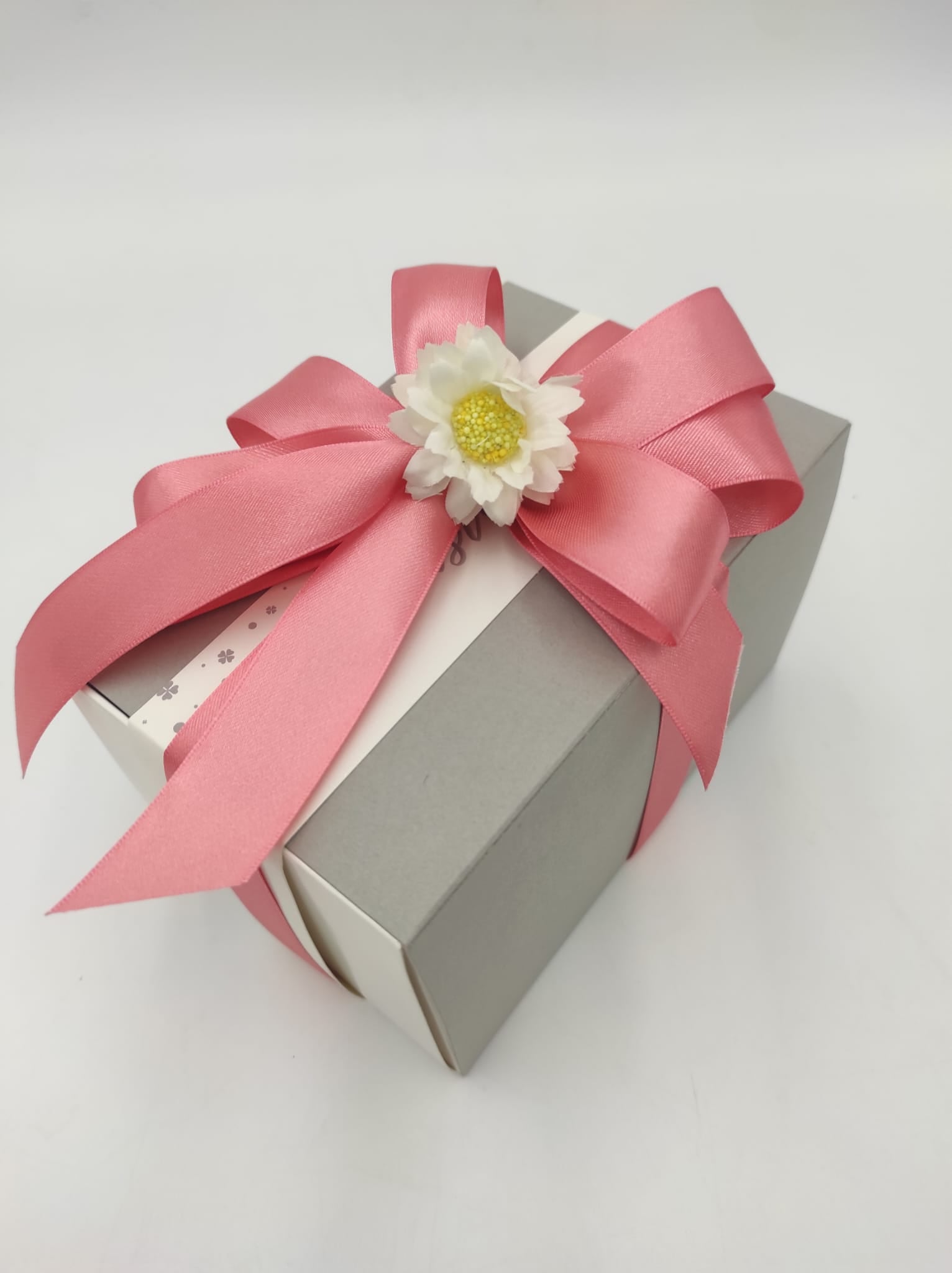 Questa bomboniera è personalizzabile con scatola o sacchetto, nastri colori a scelta, confetti gusto e colore a scelta e bigliettino personalizzato anche con immagine o tema del cliente.